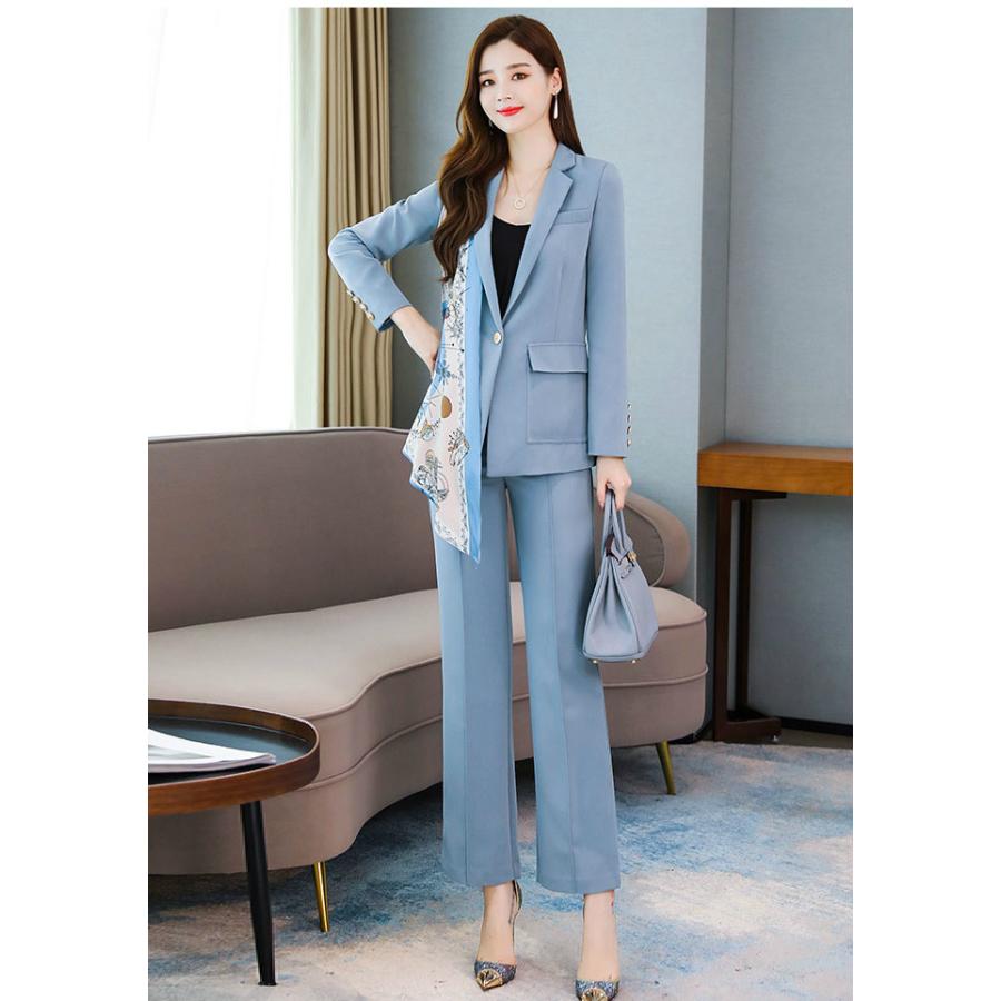 パンツスーツ セットアップ ジャケット スカーフ柄 無地 長袖 開襟 パンツ ストレート やせ見え ブルーレディース 母親 旅行 シンプル ナチュラル Ehb72 Ehb72 ライバルはデパートgracefulsmile 通販 Yahoo ショッピング