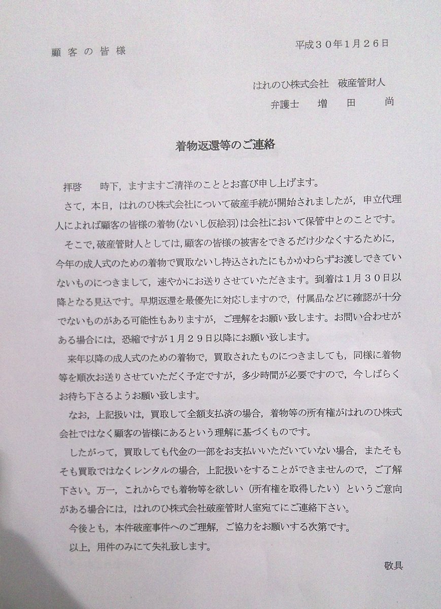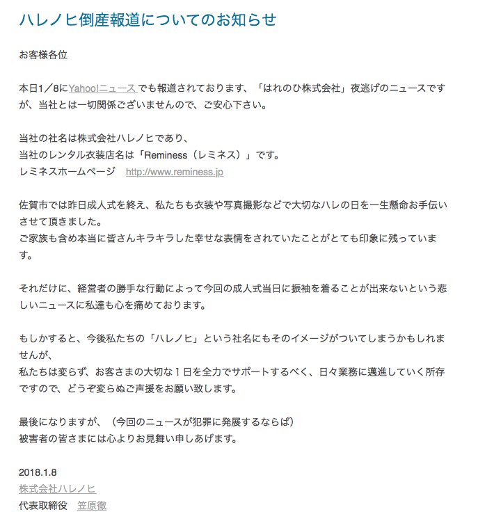 誤解しないで 着物販売 着付け店 はれのひ の倒産受けて フォトスタジオ ハレノヒ が無関係の声明を出す Togetter