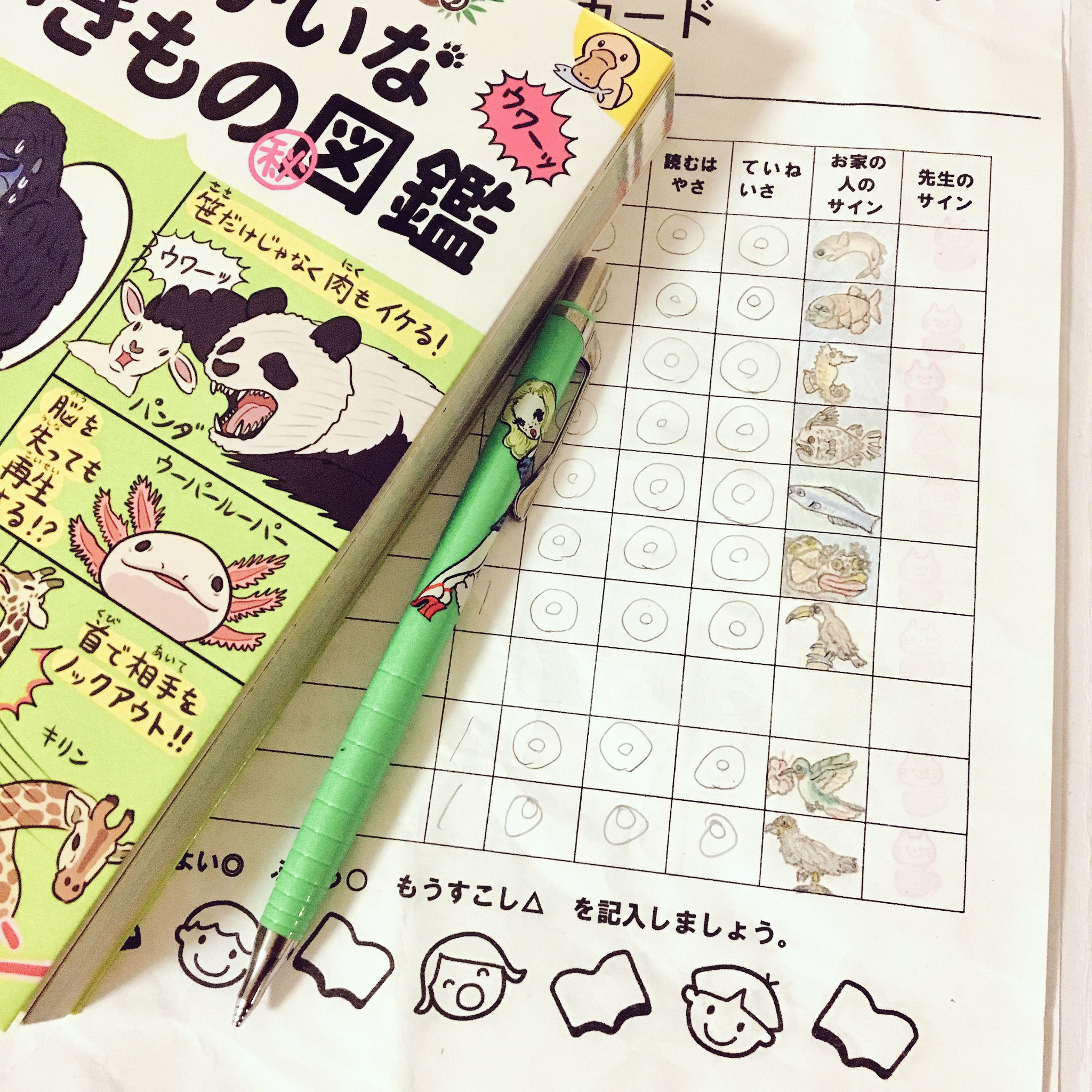よしひさ On Twitter 娘の音読カードのサイン欄を ゆかいないきもの 図鑑 の模写で埋める作戦9枚目完成 サーカスティックフリンジヘッドの怪獣感が好き 鳥の色味に苦戦したり 娘の同級生に褒められて浮かれたり